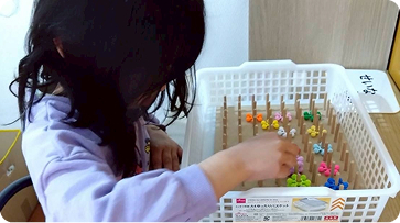 5領域に沿った専門的なプログラムと、100種類を超える教具を用いた個別支援が特徴です。「できた」「できる」という自信を積み重ね、自己肯定感を育みながら、社会性と生きる力を身につけます。